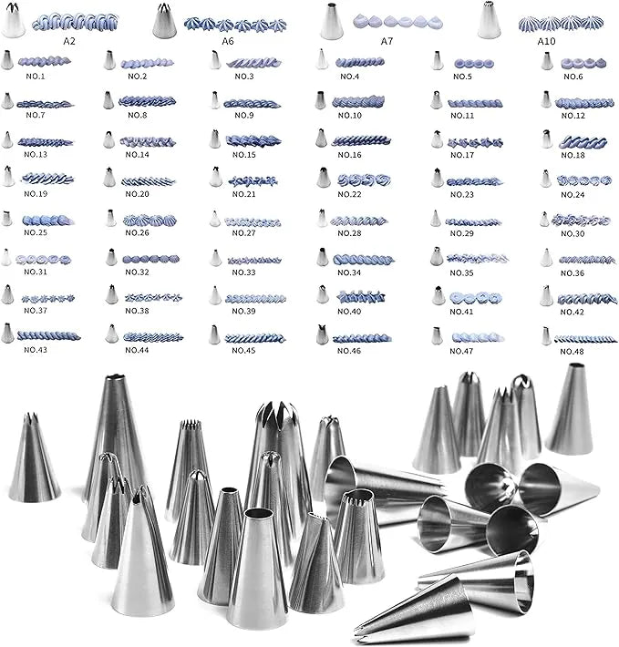 The set includes a variety of shapes such as round, star, leaf, petal, floral, and more—allowing you to create stunning designs for birthdays, weddings, parties, and daily baking. Durable, rust-resistant, and easy to clean, these nozzles are a must-have tool for every kitchen.