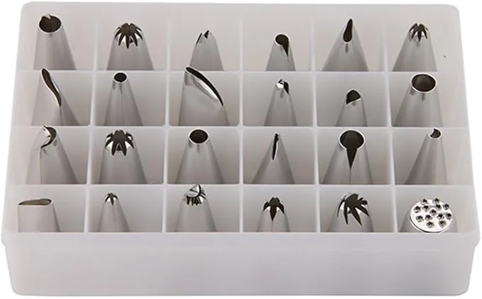 24-Piece Luxury Stainless Steel Icing Nozzle Set – Professional Cake Decorating Tips for Frosting, Cupcakes, Cookies & Sugarcraft Pastry24-Piece Luxury Stainless Steel Icing Nozzle Set – Professional Cake Decorating Tips for Frosting, Cupcakes, Cookies &