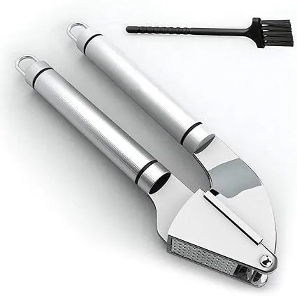 This premium 18/10 stainless steel garlic press is designed for effortless mincing of garlic and ginger. Its solid, heavy-duty build allows you to crush cloves with minimal effort, producing fine, even garlic paste every time.