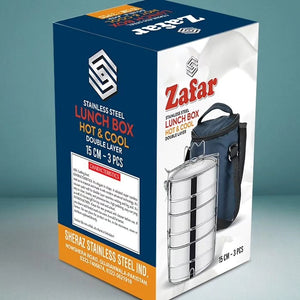 Stain Less Steel Hot Tiffin with Sturdy Bag Available in 2 , 3 , 4 Compartment Sizes Made From Heavy Thick Stainless Steel For Superior Heat Retention and Durablity