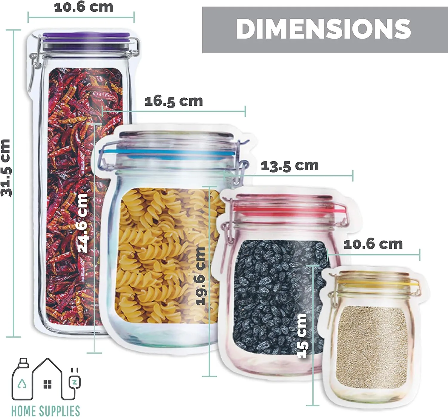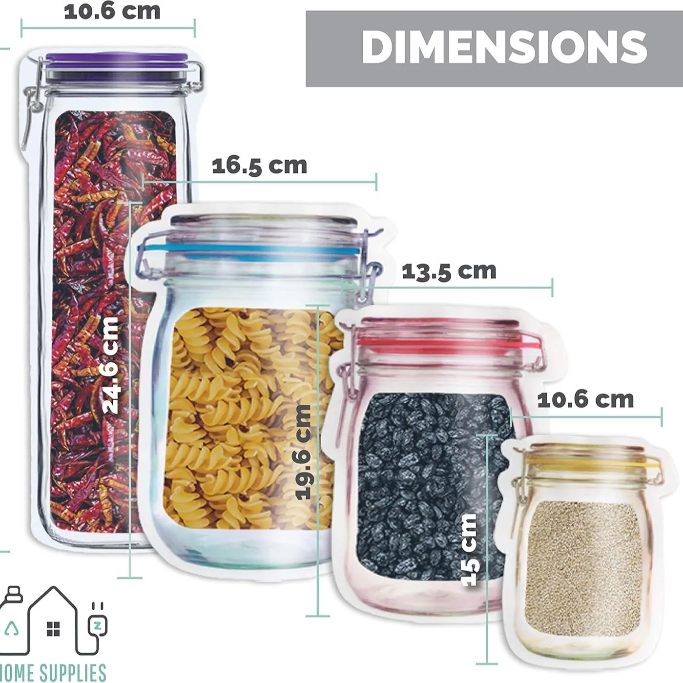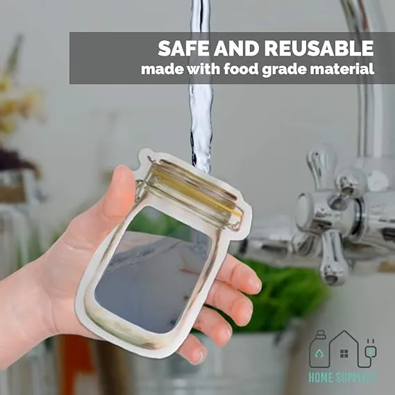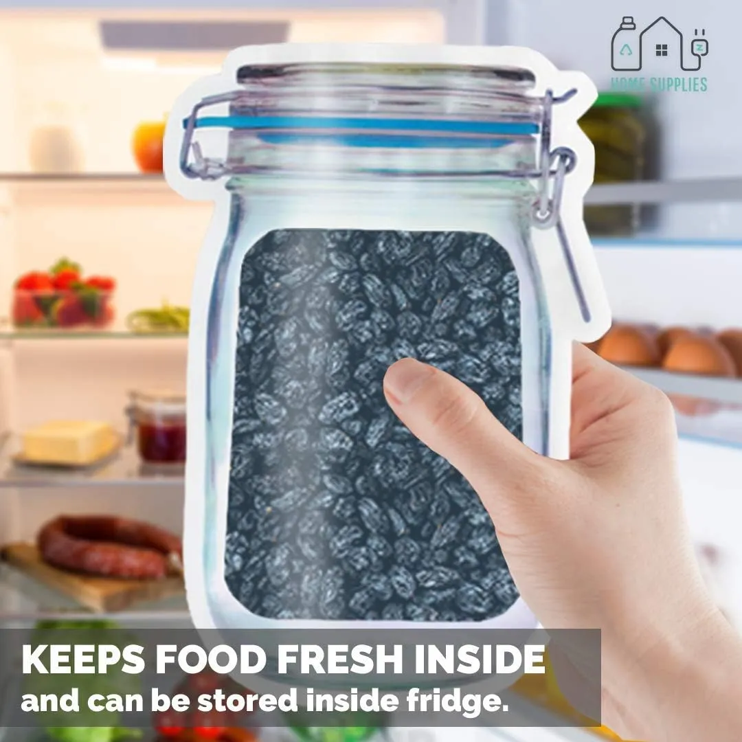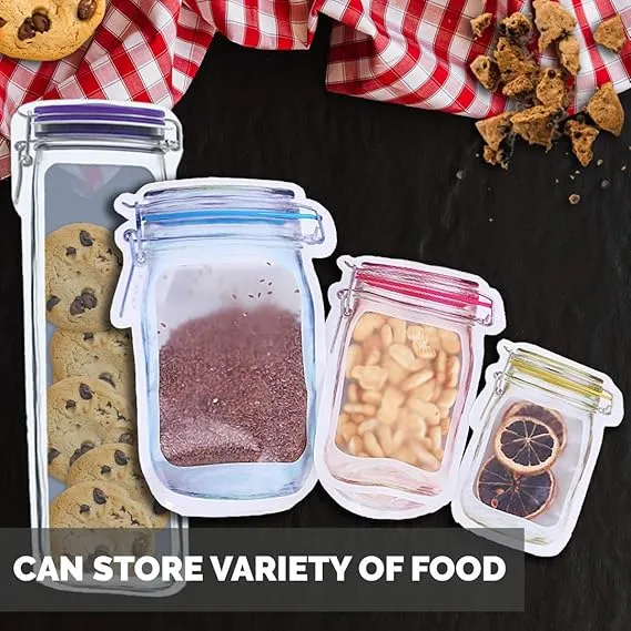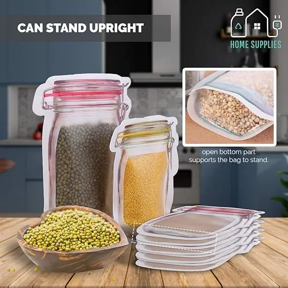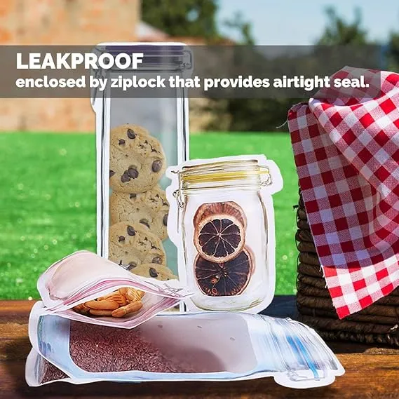 Mason Jar Ziploc Storage Bags – Reusable Leakproof Food Saver Pouches, Kitchen Organizer Ziplock Bags for Snacks & Dry Food
