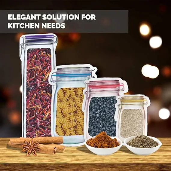 Organize your kitchen in style with these Mason Jar Ziploc Storage Bags. Designed to look like cute mason jars, these reusable ziplock pouches are perfect for storing snacks, dry fruits, spices, candies, vegetables, and more.
