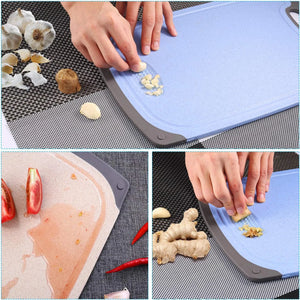 Upgrade your kitchen essentials with this Professional Plastic Cutting Boards Set. Designed with non-slip feet, these chopping boards stay firmly in place while cutting meat, vegetables, fruits, bread, and more. Each board features a colored design, helping you avoid cross-contamination by assigning each color for different types of food.