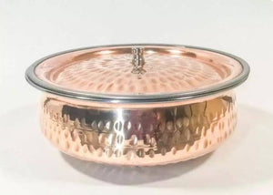 Bring elegance and tradition to your dining experience with our Premium Hammered Copper Karahi. Handcrafted with precision, this karahi features a beautiful hammered design, polished copper finish, and a sturdy stainless steel lid.