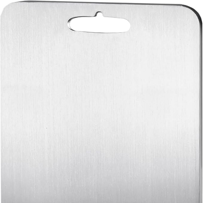 This Stainless Steel Cutting Board is designed for durable and hygienic food preparation. Its heavy-duty construction provides a strong, stable surface for chopping, slicing, and cutting a variety of foods. Unlike wooden or plastic boards, the stainless steel surface does not absorb odors, stains, or moisture, making it easy to clean and maintain. Perfect for daily kitchen use, this chopping board offers long-lasting performance and a modern, professional look.