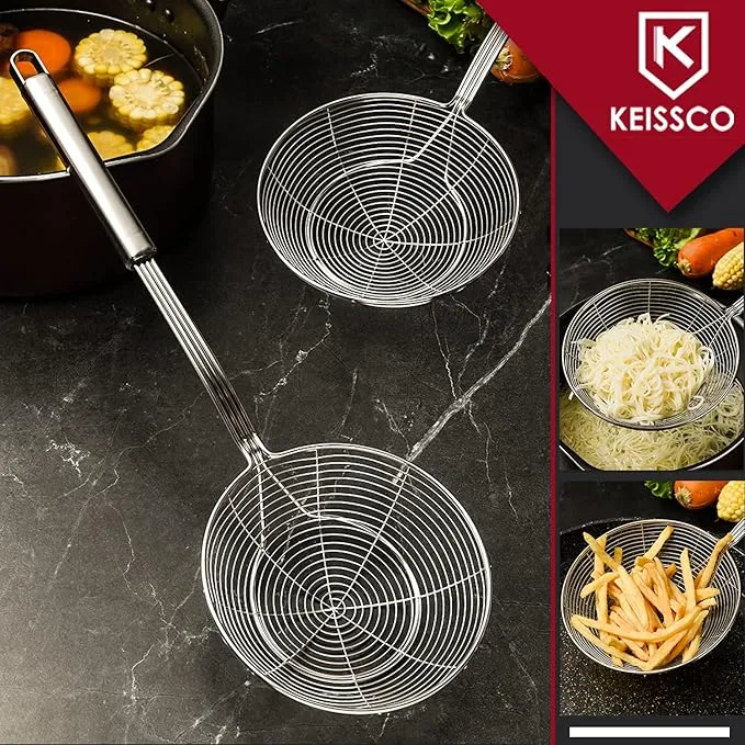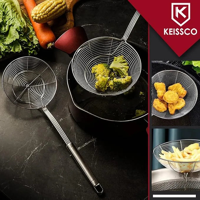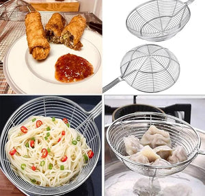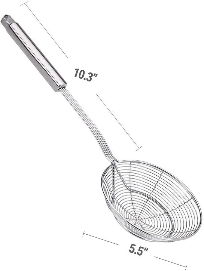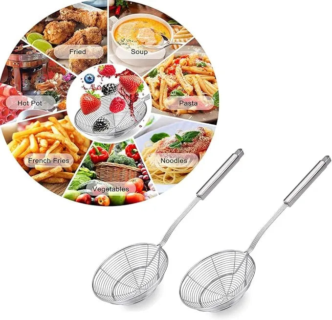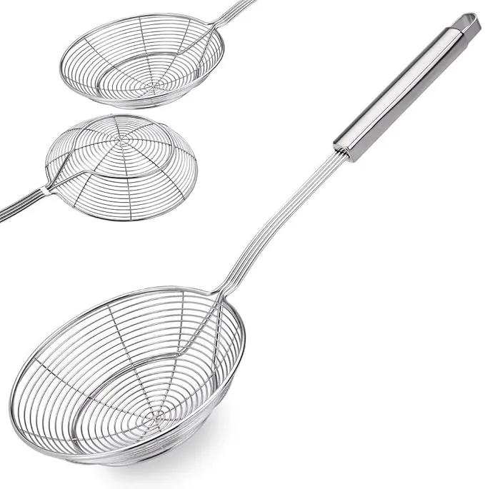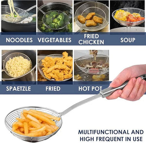 Stainless Steel Spider Strainer Skimmer Ladle | Rust-Proof Frying Colander Spoon with Non-Slip Long Handle for Kitchen & Cooking